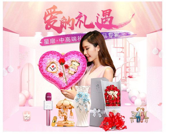 如图10将活动分为了送男友专区、送女友专区和装饰摆件专区,很清晰的例举出了不同的专区,方便客户对想要的产品进行选择购买。可以说很贴心的考虑到了客户的购买心理。